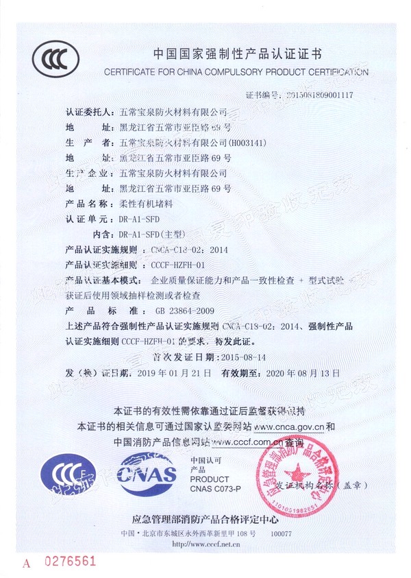 企業(yè)簡介 五常寶泉防火材料有限公司(黑龍江省寶泉消防設(shè)備有限公司)是主要制造、經(jīng)營、銷售防火阻燃材料系列產(chǎn)品。其中以自粘性阻燃包帶(ZFBD)、阻火包(PFB)、有機(jī)防火堵料(SFD)、室內(nèi)超薄型鋼結(jié)構(gòu)防火涂料(NCB(BCF)-1)為主要產(chǎn)品。寶泉牌防火材料系列產(chǎn)品是普通防火材料的更新?lián)Q代產(chǎn)品,防火性能優(yōu)異,具有普通防火材料沒有的諸多優(yōu)點(diǎn):施工方便、經(jīng)久耐用、耐火極限高、熱傳導(dǎo)率低、耐腐蝕、抗老化、無毒無害、環(huán)保、可以連續(xù)施工等特點(diǎn)。產(chǎn)品廣泛應(yīng)用于電力企業(yè)(各型電廠、輸變電公司、電建公司、電力公司)、石油化工企業(yè)、冶金業(yè)、通訊業(yè)、地鐵、隧道、...